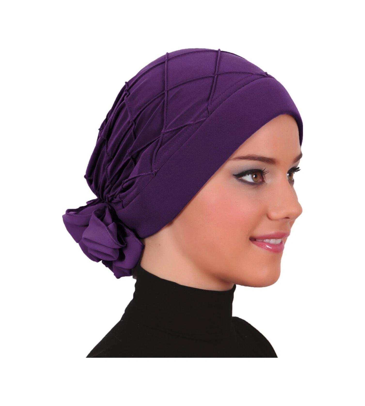 Lüks Nervürlü Arkası Şifon Aksesuarı Mor Hazır Türban Tesettür Bone Mor