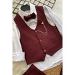 Lüks Planet Yelekli Papyonlu Erkek Çocuk Takım Elbise Bordo