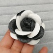 Lüks Siyah Beyaz Kumaş Kamelya Çiçek Broşu Kadın Büyük Gül B White- Pu 6cm Beyaz Çok Renkli