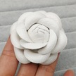Lüks Siyah Beyaz Kumaş Kamelya Çiçek Broşu Kadın Büyük Gül White- Pu 6cm Beyaz Çok Renkli
