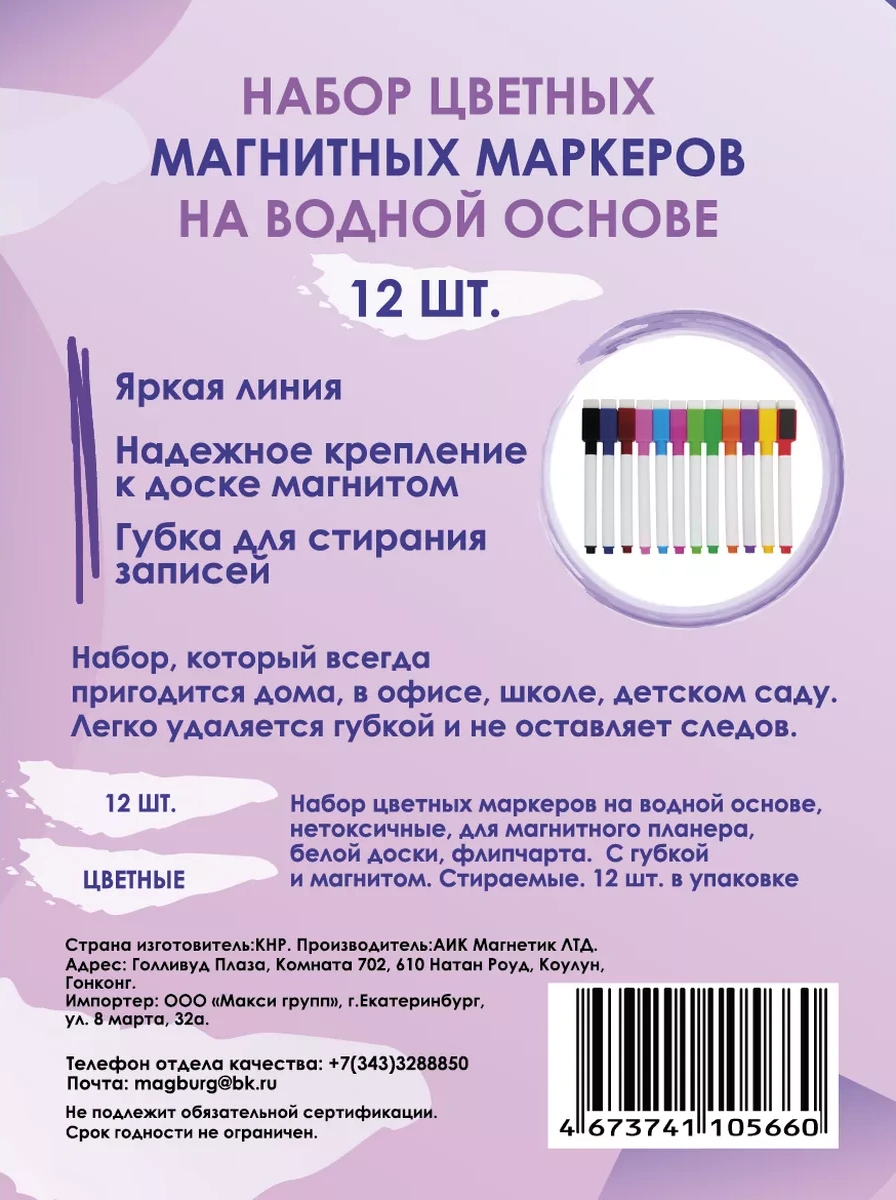 Lumirance Su Bazlı, Silinebilir Yazı Tahtası Kalemleri. 12 Adet. 196126253 Siyah