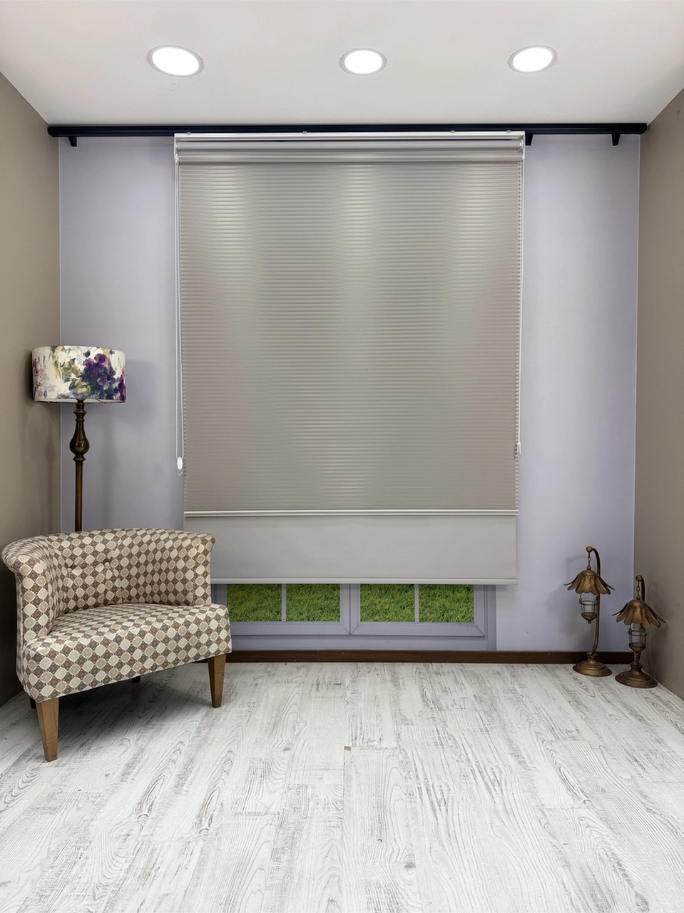 Luna Serisi Açık Gri Tül Açık Gri Stor Perde Işık Kontrollü, Çift Mekanizmalı, Kolay Montaj Açık Gri
