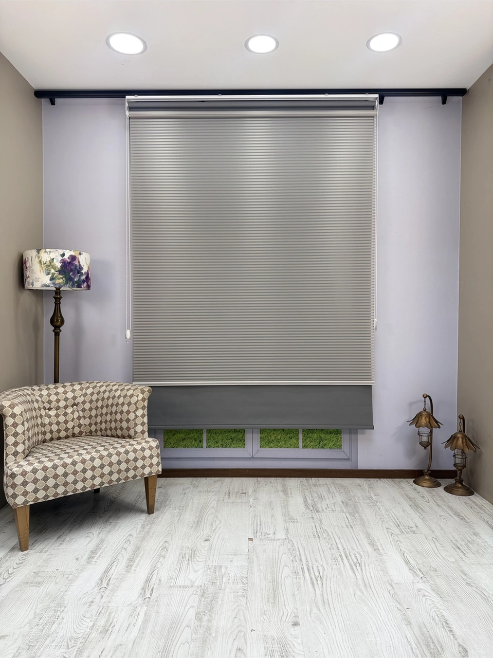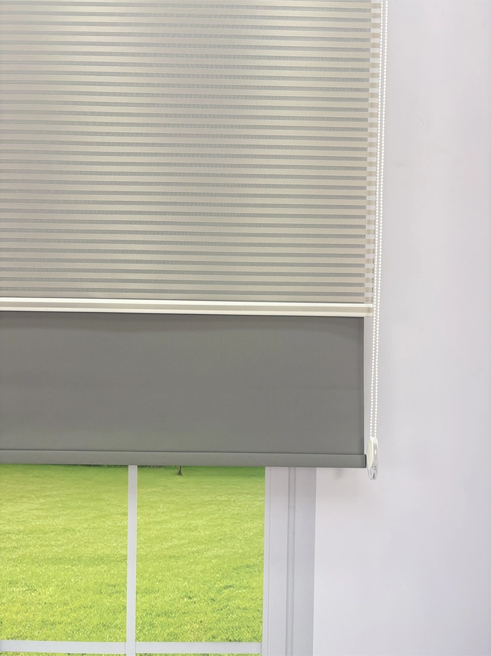Luna Serisi Açık Gri Tül Antrasit Gri Stor Perde Işık Kontrollü, Çift Mekanizmalı, Kolay Montaj Antrasit Gri