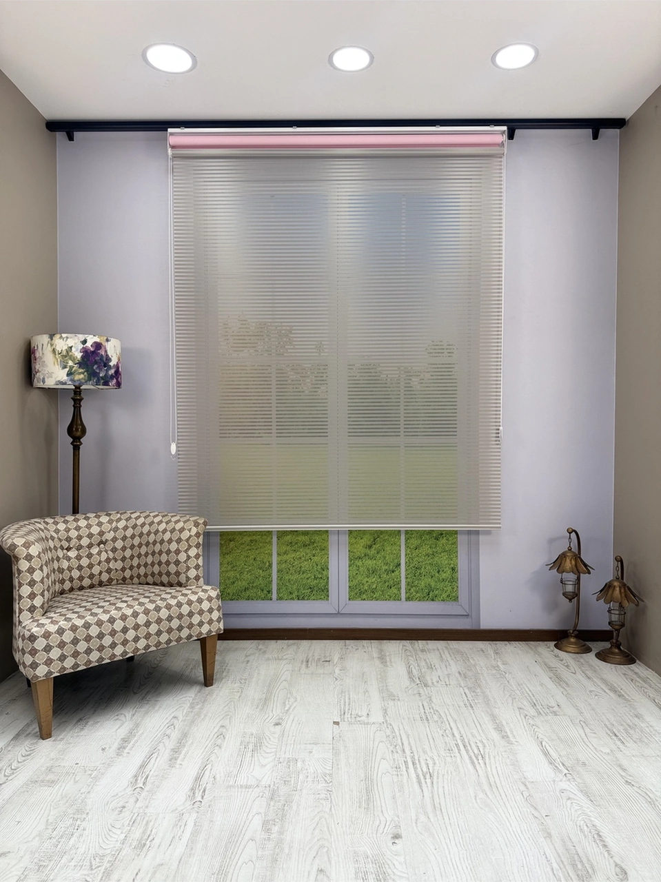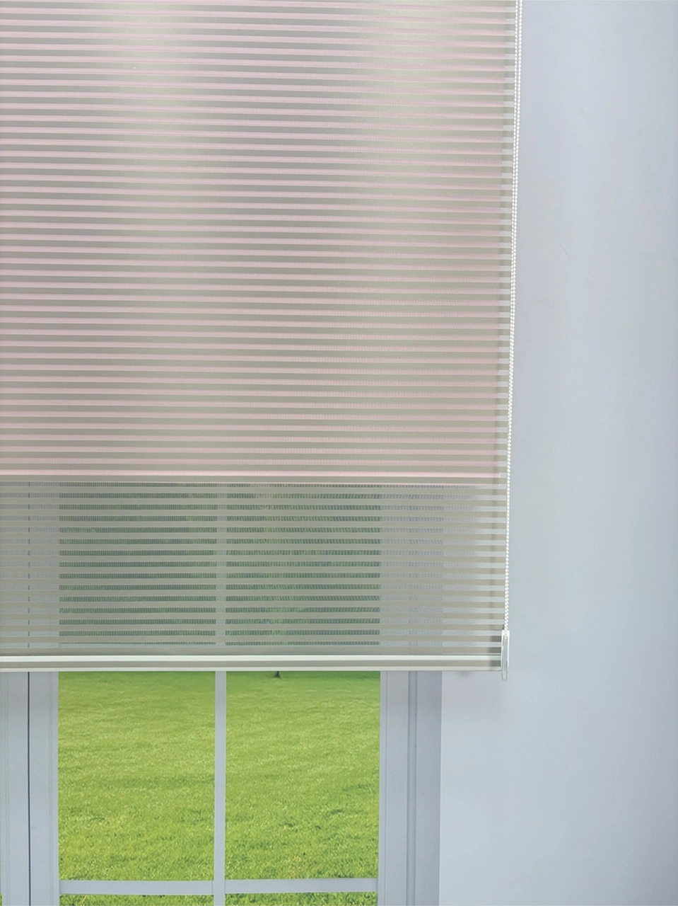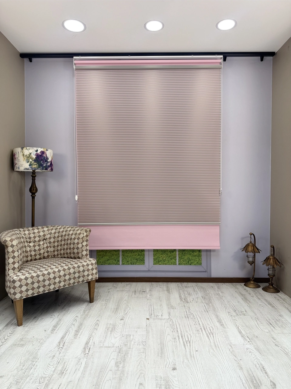 Luna Serisi Açık Gri Tül Pembe Stor Perde Işık Kontrollü, Çift Mekanizmalı, Kolay Montaj Pembe