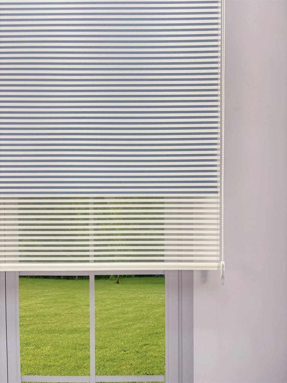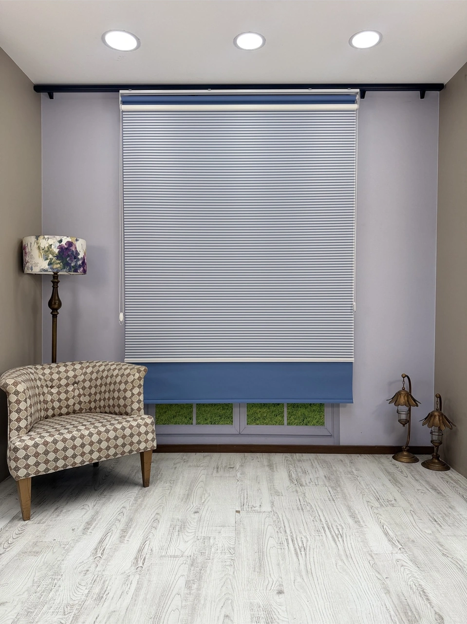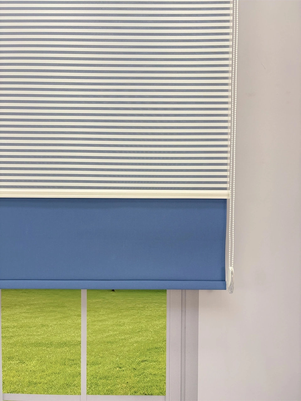 Luna Serisi Beyaz Tül Mavi Stor Perde Işık Kontrollü, Çift Mekanizmalı, Kolay Montaj Mavi