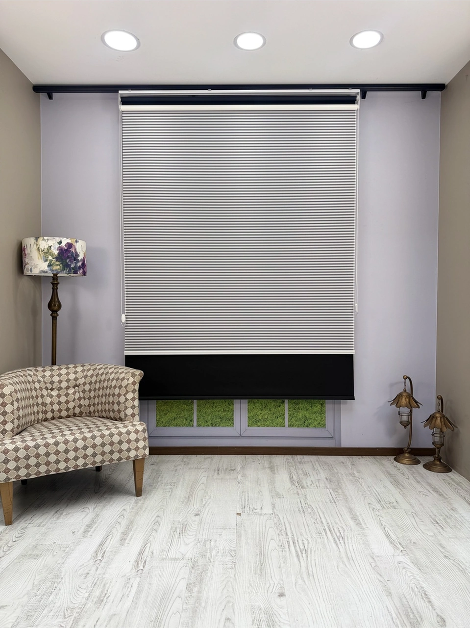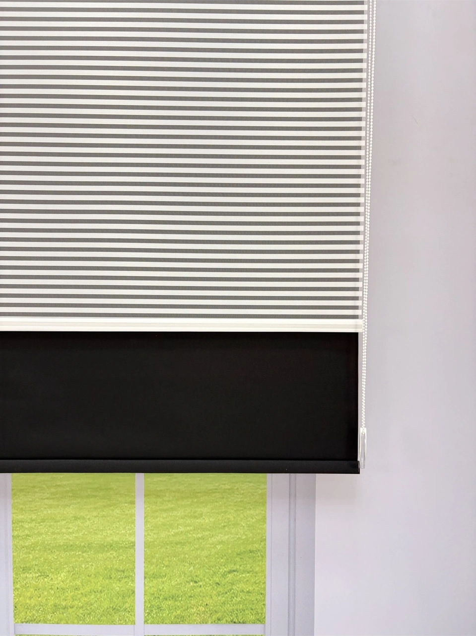 Luna Serisi Beyaz Tül Siyah Stor Perde Işık Kontrollü, Çift Mekanizmalı, Kolay Montaj Siyah