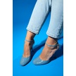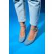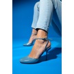 Luvishoes Blues Mavi Rugan Yuvarlak Burun Bilekten Bağlamalı Kadın Yüksek Topuklu Ayakkabı Mavi
