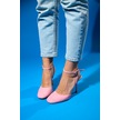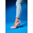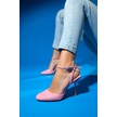 Luvishoes Blues Pembe Rugan Yuvarlak Burun Bilekten Bağlamalı Kadın Yüksek Topuklu Ayakkabı Pembe