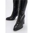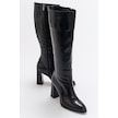 Luvishoes Decer Siyah Cilt Kadın Topuklu Çizme Siyah