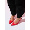 Luvishoes Flem Kırmızı Rugan Kadın Sivri Burun Arkası Açık İnce Topuklu Ayakkabı Kırmızı Rugan
