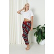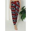 Luxury Soft Welsoft Polar Desenli Kurdeleli Kışlık Pijama Altı Pantolon Lacivert Kırmızı Lacivert - Kırmızı