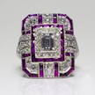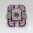 Luxury Square Women Crystal Zircon Engagement Ring, Ring Size:6 Purple Çok Renkli