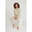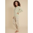 Luxury Thermal Be Sweet Yazılı Çizgili Desenli Kadın Polar Pijama Takımı 42040 Krem