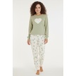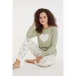 Luxury Thermal Büyük Kalp Desenli Kadın Polar Kışlık Pijama Takımı 42047 Haki