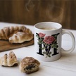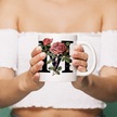 M Baş Harf Kırmızı Güller İle Sarılı Bardak 330 Ml Kişiye Özel Çiçekli Hediye Beyaz