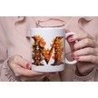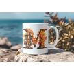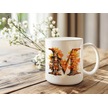 M Harf Sonbahar Yaprak Temalı Kupa Bardak - Sevimli Figürler İle Alfabe Harfli Bardak - Kişiye Özel Beyaz