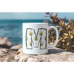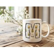 M Harfi Arı Desenli Kupa - Sevimli Hayvan Temalı Kişiye Özel Kahve Kupası - Şans Kupası Beyaz