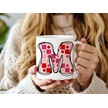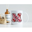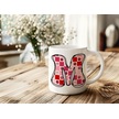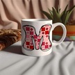M Harfi Pembe Kareli Kalpli Göz Emojili Kupa Bardak Eğlenceli Kareli Tasarım Kahve Çay Kupası 07 Beyaz