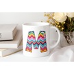 M Harfi Renkli Zigzag Desenli Kupa Bardak - Afrika Tarz Etnik Tasarım Kupa - Kişiye Özel Beyaz