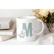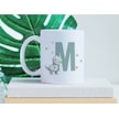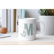 M Harfi Sevimli Dinozor Kupa Bardak - Açık Yeşil Yıldız Detaylı Dino Tasarım - Hediye Beyaz