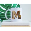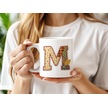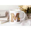 M Harfi Sonbahar Kış Temalı Yamalı Tasarım Kupa Bardak - Etnik Ve Pathwork Severlere Özel Hediye Beyaz