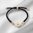 M Harfine Özel Oval Motifli İpek Örgülü 14 Ayar Altın Plakalı Hediye Bileklik-320harf-siyah Altın