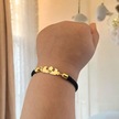 M Harfine Özel Siyah İpek Örgülü Taç Figürlü 14 Ayar Altın Plakalı Hediye Bileklik-507harf M