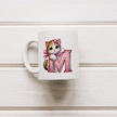 M Harfli Bardak, Sevimli Kedili Pembe Tasarım Bardak, Arkadaşa Aileye Hediye Porselen Beyaz