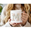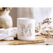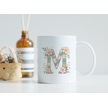 M Harfli Çiçek Desenli Kupa Bardak - Ekose Desenli Yeşil Pembe Desenli Tasarım - Kişiye Özel Hediye Beyaz