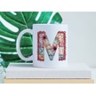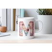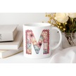 M Harfli Retro Çiçekli Kupa Bardak - Patchwork Tarz Yamalı Desenli İsme Özel Kupa - Hediye Beyaz