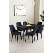 Mabel Siyah Mermer Desen 80x132 Açılabilir Yemek Odası Takımı 6 Adet Sandalye Antrasit