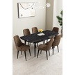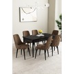 Mabel Siyah Mermer Desen 80x132 Açılabilir Yemek Odası Takımı 6 Adet Sandalye Kahverengi