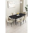 Mabel Siyah Mermer Desen 80x132 Açılabilir Yemek Odası Takımı 6 Adet Sandalye Krem