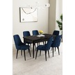 Mabel Siyah Mermer Desen 80x132 Açılabilir Yemek Odası Takımı 6 Adet Sandalye Lacivert