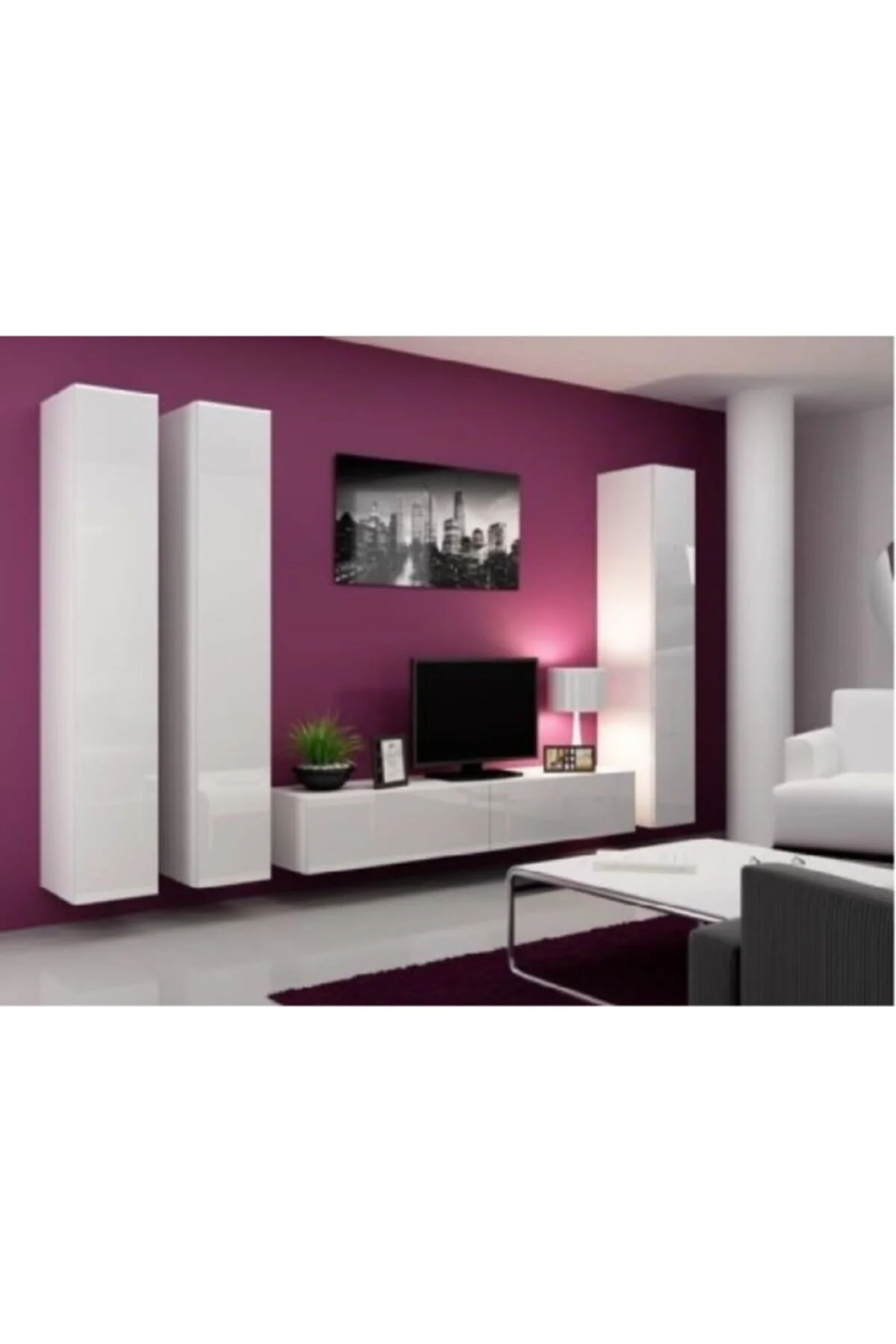 Mac Dizayn Fasalıs Boy Dolaplı 140 Cm Beyaz Parlak Tv Ünitesi Modern Duvar Tipi Minimalist Tasarım Parlak Beyaz