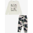 Macawı Kız Çocuk Pijama Takımı Kamuflaj Desenli 3-8 Yaş, Krem-krem Krem