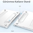 Macbook Air 13.6" M2-m3 Çip 2022/2024 A2681 A3113 Uyumlu Standlı Şeffaf İz Bırakmayan Koruyucu Kapak Şeffaf