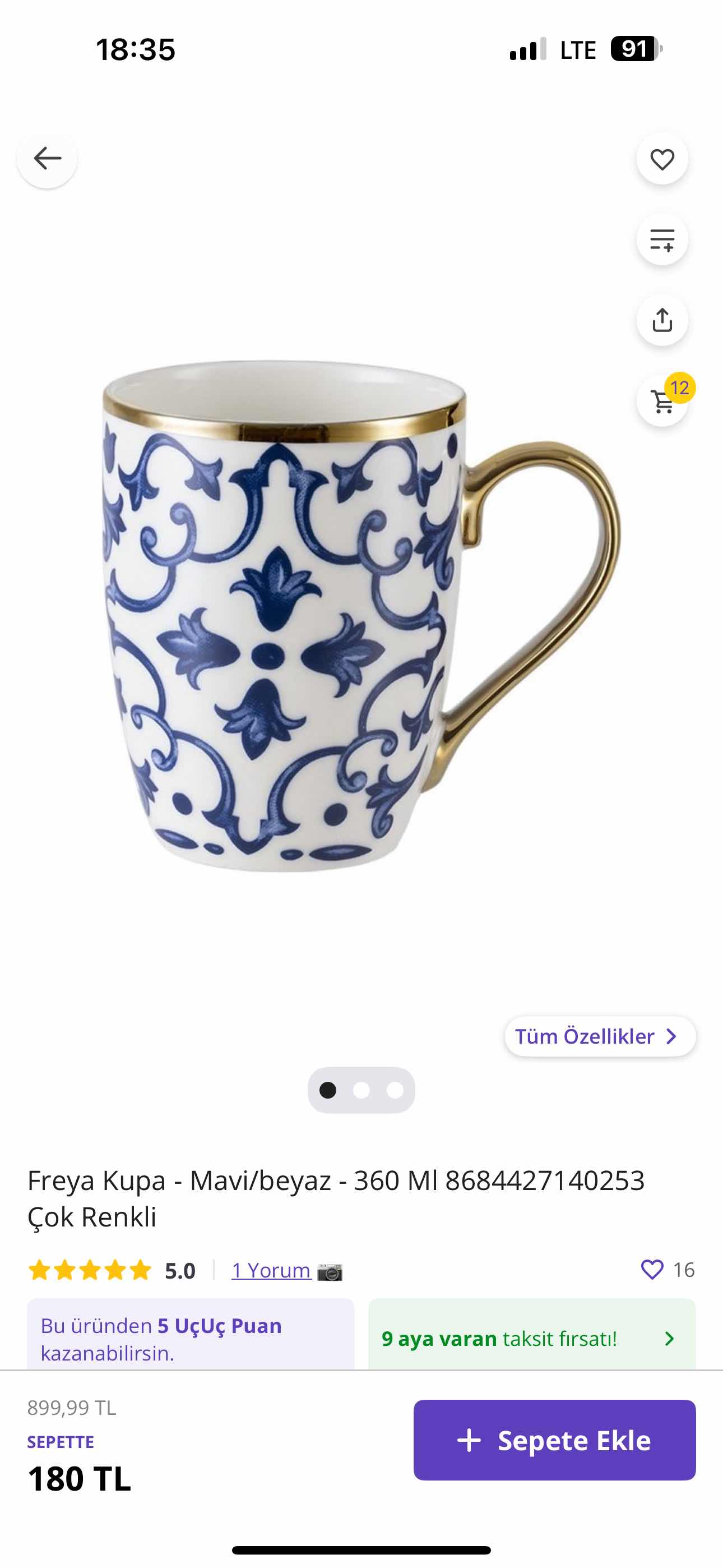 Madame Coco Freya Kupa - Mavi/beyaz - 360 Ml 8684427140253 Çok Renkli