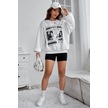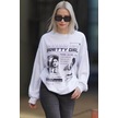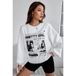 Madmext Beyaz Baskılı Oversize Kadın Sweatshirt Mg1923 Beyaz