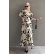Madmext Ekru Desenli Yarım Kollu Elbise Mg2395 Ekru