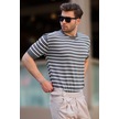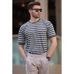 Madmext Füme Bisiklet Yaka Çizgili Kısa Kollu Erkek Tişört 6884-füme Füme