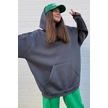 Madmext Füme Kapüşonlu Şardonlu Oversize Sweatshirt Mg1566 Füme