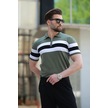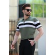 Madmext Haki Fermuarlı Polo Yaka Çizgili Erkek Tişört E7406 Haki