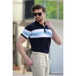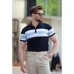 Madmext Lacivert Fermuarlı Polo Yaka Çizgili Erkek Tişört E7406 Lacivert
