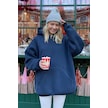 Madmext Lacivert Kapüşonlu Şardonlu Oversize Sweatshirt Mg1566 Lacivert