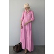 Madmext Pembe Çizgili Düğmeli Uzun Elbise Mg2392 Pembe