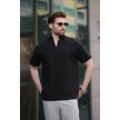 Madmext Siyah Polo Yaka Erkek Basic T-shirt E7145 Siyah