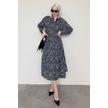 Dilvin Bisiklet Yaka Kısa Kol Baskılı Triko Elbise Füme