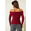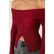 Madonna Yaka Düğmeli Bluz Bordo T4329 Bordo