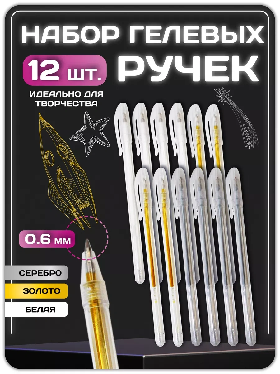 Magburg Beyaz, Altın, Gümüş Renkli 12 Adet Jel Kalem 231020025 Beyaz